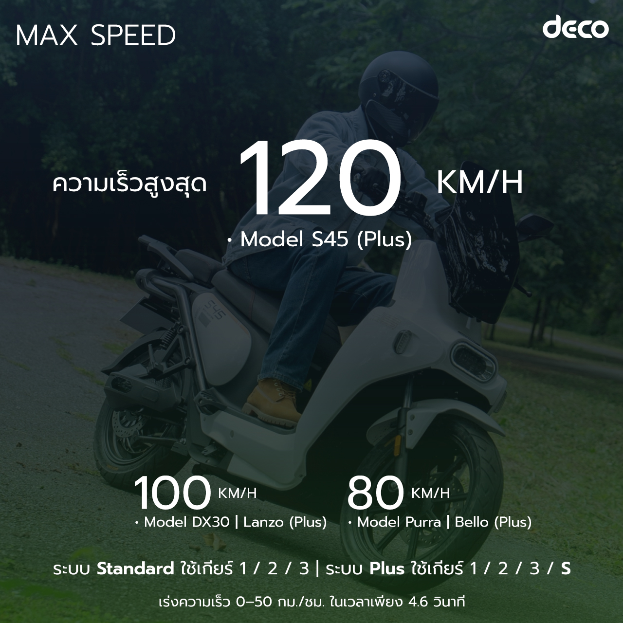 มอเตอร์แบบ Double Hall สำหรับขนาด 3000W และ 4500W มาตรฐานกันน้ำ IP67 พร้อมความเร็วสูงสุด 120 กม./ชม. ในรุ่น S45 (Plus) ตอกย้ำสมรรถนะและเทคโนโลยีรถไฟฟ้ารุ่นใหม่จาก DECO